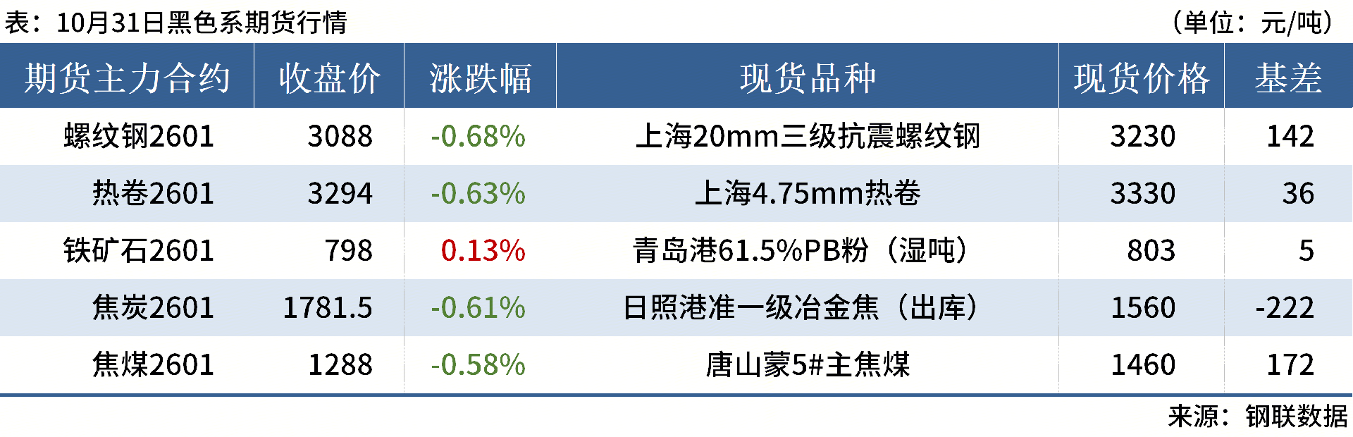 ◎ 10月31日,全國主港鐵礦石成交79.60萬(wàn)噸,環(huán)比增7.6%;237家主流貿易商建筑鋼材成交8.99萬(wàn)噸,環(huán)比減0.3%。