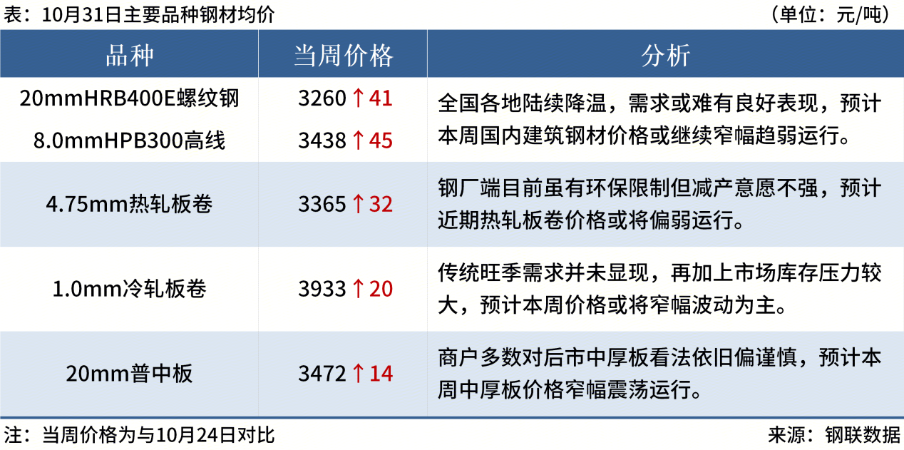 ◎ Mysteel建材首席分析師汪建華:展望11月鋼鐵市場(chǎng),雖然基本面的壓力仍然存在,但中美關(guān)系從反復博弈走向穩定,必將帶來(lái)宏觀(guān)情緒的好轉乃至估值的修復,鋼鐵價(jià)格有望出現階段性反彈的態(tài)勢。詳情>>