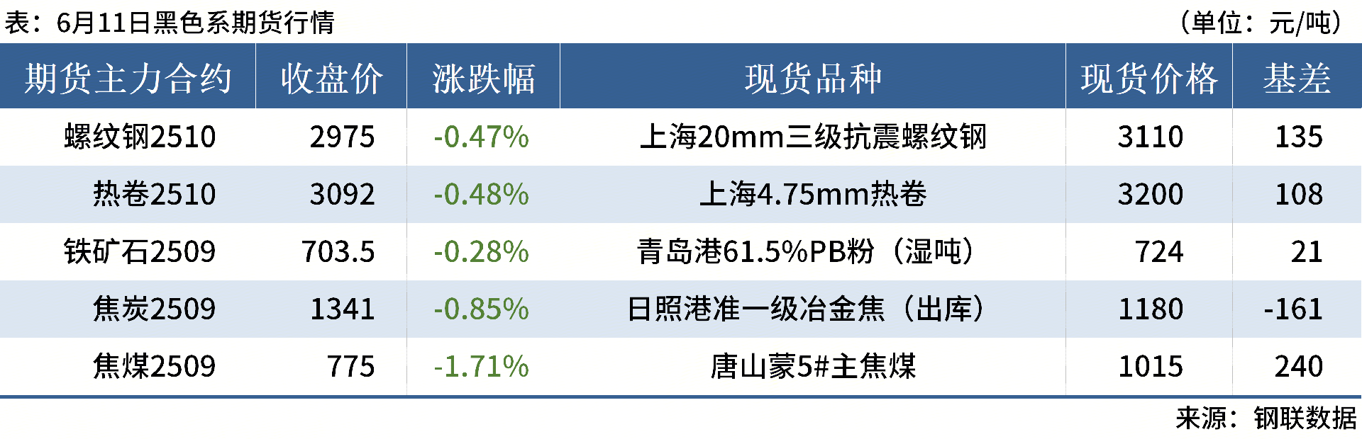 ◎ 6月11日,全國主港鐵礦石成交78.70萬(wàn)噸,環(huán)比減17.1%;237家主流貿易商建筑鋼材成交10.46萬(wàn)噸,環(huán)比增4.9%。