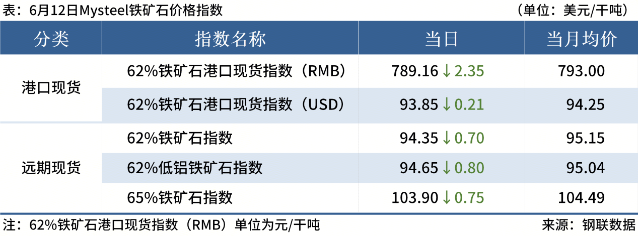 ◎ 6月12日,全國主港鐵礦石成交85.40萬(wàn)噸,環(huán)比增8.5%;237家主流貿易商建筑鋼材成交8.92萬(wàn)噸,環(huán)比減14.7%。