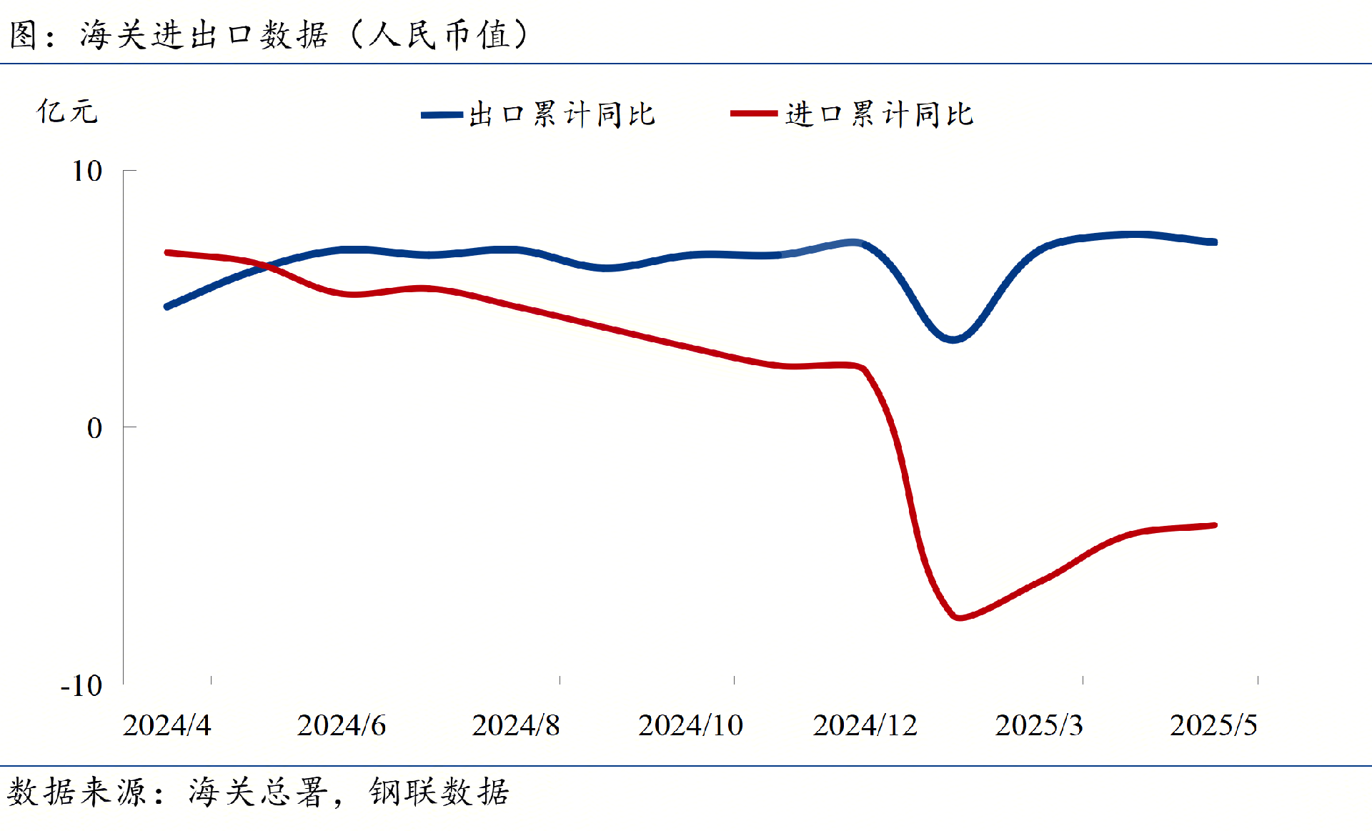 ◎ 海關(guān)總署:2025年5月中國出口鋼材1057.8萬(wàn)噸,環(huán)比增長(cháng)1.1%;1-5月累計出口鋼材4846.9萬(wàn)噸,同比增長(cháng)8.9%。