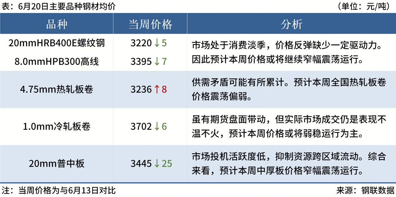 ◎ 6月20日,全國主港鐵礦石成交77.70萬(wàn)噸,環(huán)比減23.8%;237家主流貿易商建筑鋼材成交9.75萬(wàn)噸,環(huán)比增8.2%。