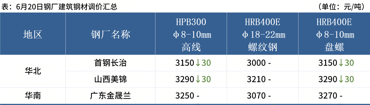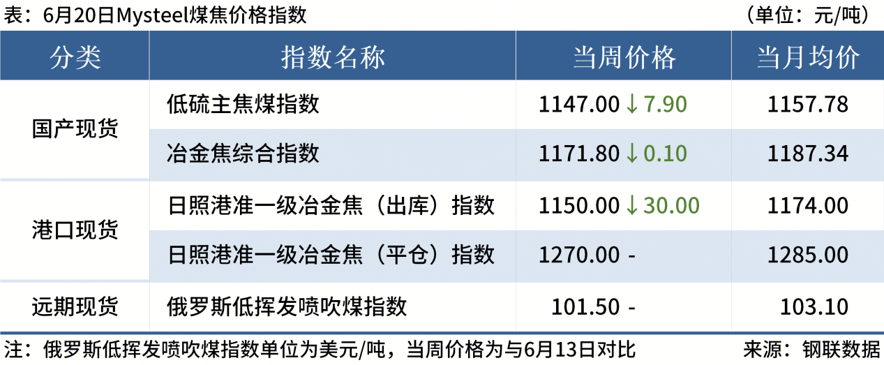 ◎ 6月20日,河北、天津等部分鋼廠(chǎng)對濕熄焦炭下調50元/噸、干熄焦炭下調55元/噸,開(kāi)啟第4輪提降,2025年6月23日零點(diǎn)執行。