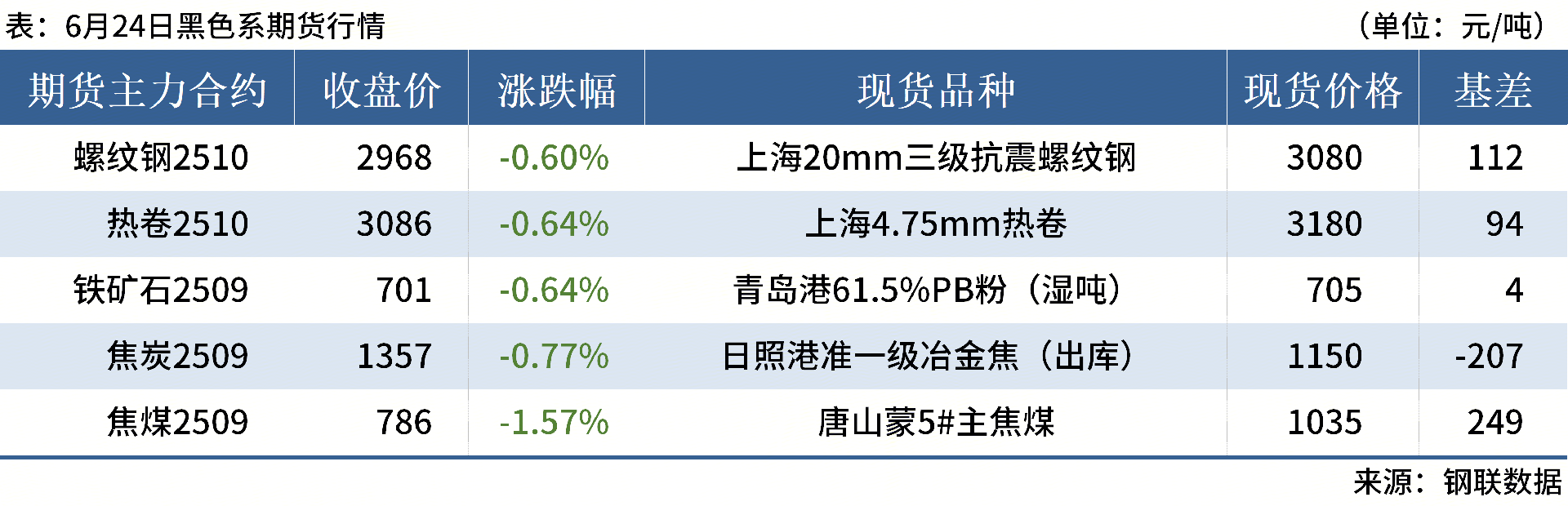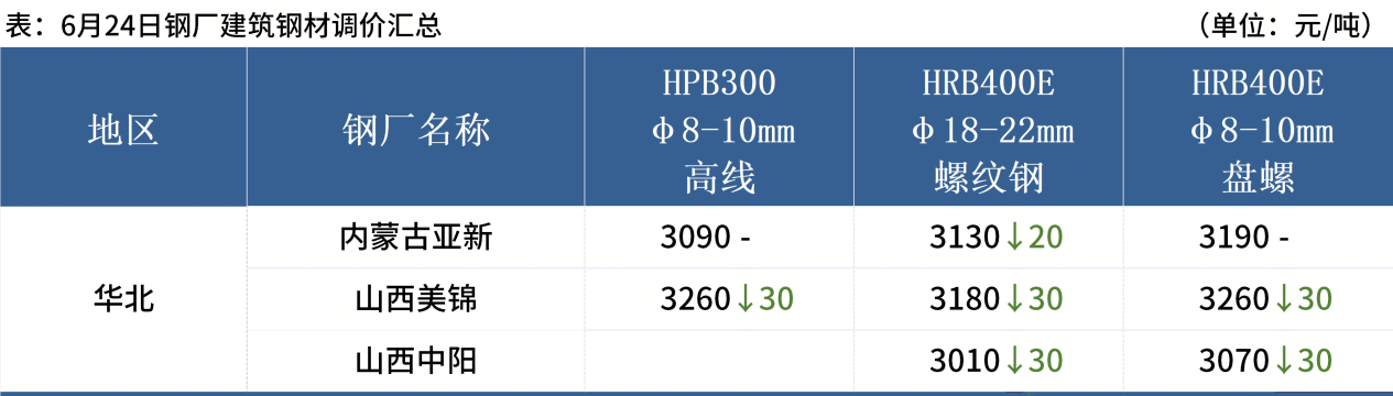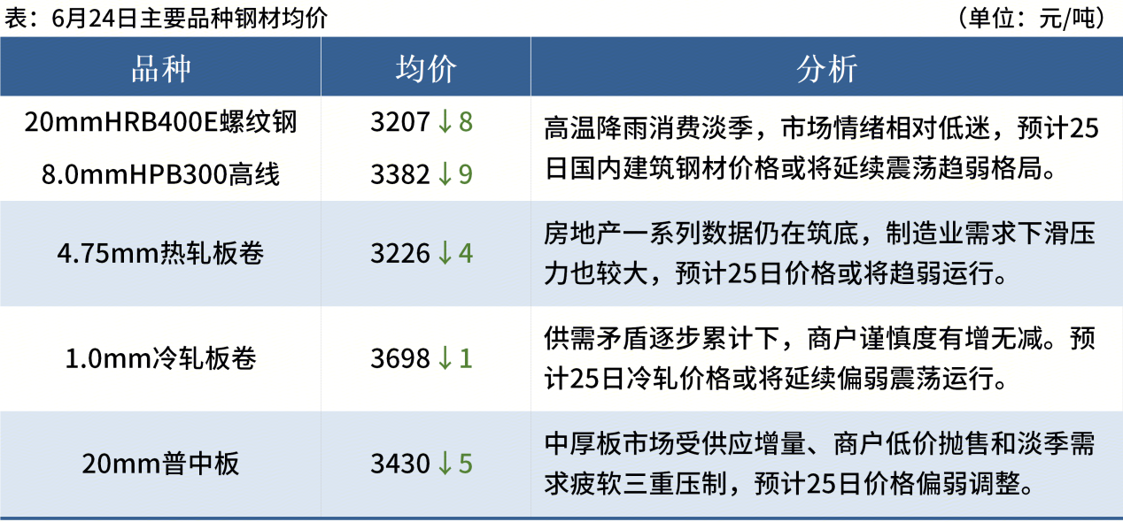 ◎ 6月24日,全國主港鐵礦石成交81.30萬(wàn)噸,環(huán)比減31.2%;237家主流貿易商建筑鋼材成交9.32萬(wàn)噸,環(huán)比減9.5%。