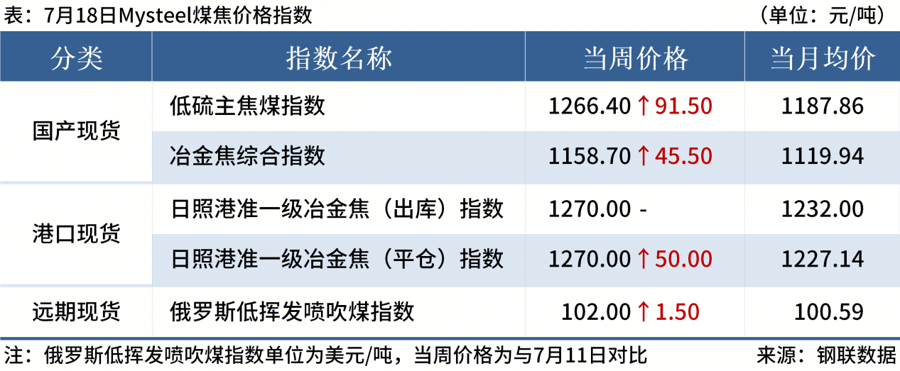 ◎ 7月煉焦煤價(jià)格整體呈現穩中趨強態(tài)勢。安澤低硫主焦煤出廠(chǎng)價(jià)從1170元/噸升至1300元/噸,漲幅11.1%,成為領(lǐng)漲品種。詳情>>