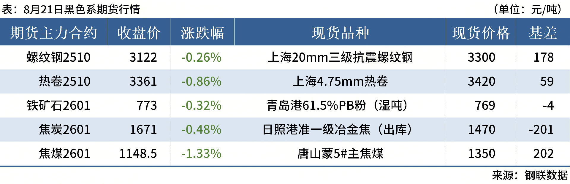◎ 8月21日,全國主港鐵礦石成交91.70萬(wàn)噸,環(huán)比減22.9%;237家主流貿易商建筑鋼材成交9.35萬(wàn)噸,環(huán)比減8.5%。