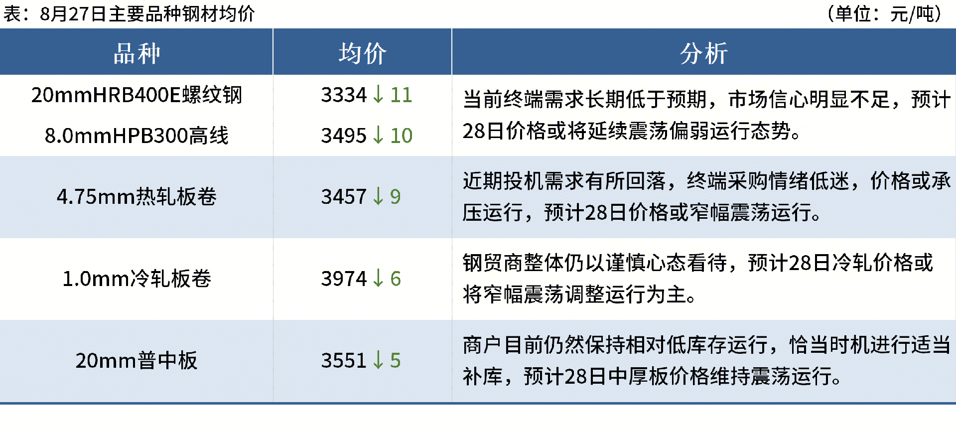 ◎8月27日,全國主港鐵礦石成交91.30萬(wàn)噸,環(huán)比增12.2%;237家主流貿易商建筑鋼材成交9.12萬(wàn)噸,環(huán)比增9.7%。