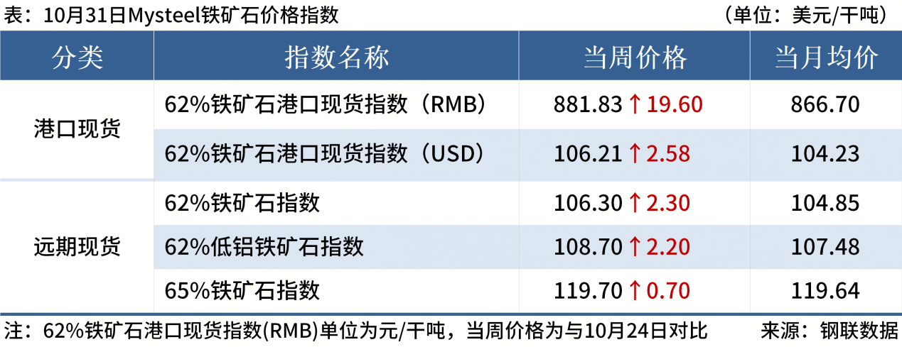 ◎ 10月31日,全國主港鐵礦石成交79.60萬(wàn)噸,環(huán)比增7.6%;237家主流貿易商建筑鋼材成交8.99萬(wàn)噸,環(huán)比減0.3%。