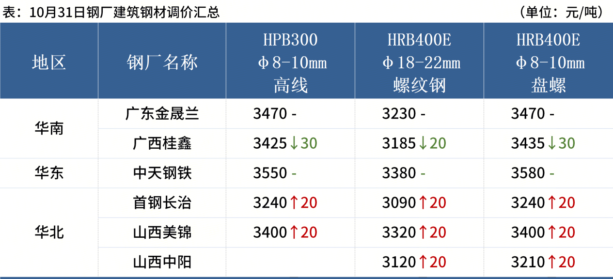 ◎ 江蘇永鋼出臺11月上旬出廠(chǎng)價(jià),螺紋鋼、線(xiàn)材、盤(pán)螺平穩,現螺紋鋼3400元/噸,線(xiàn)材盤(pán)螺3600元/噸。
