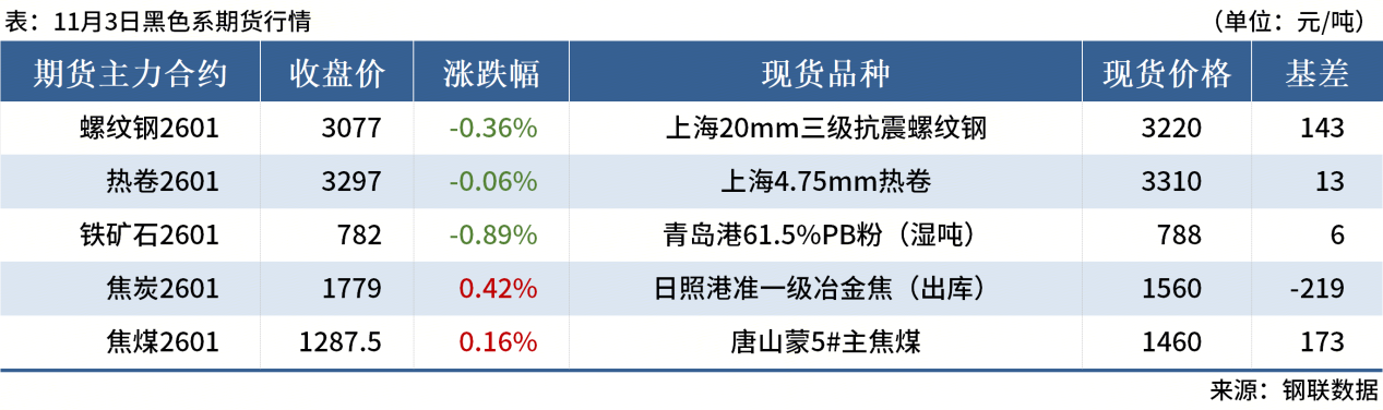 ◎11月3日,全國主港鐵礦石成交129.30萬(wàn)噸,環(huán)比增62.4%;237家主流貿易商建筑鋼材成交9.80萬(wàn)噸,環(huán)比增9%。